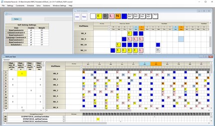 Automates scheduling of employee work shifts with a variety of constraints. It is a fast solver with GUI for nursing scheduling problems.