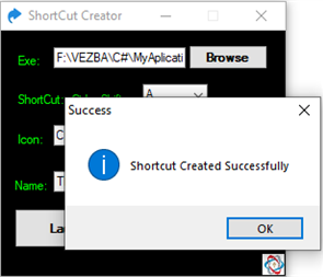 This application allows you to create a shortcut with the desired icon for any executable .exe file on your desktop. You can open this shortcut by double-clicking the mouse or on the keyboard with the keys ctrl+shift+ the letter you select in the application's combo box.