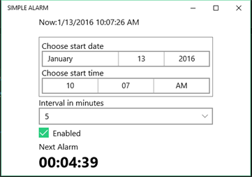 A simple, no frills alarm application. Set the start time, set your alarm in minutes and you are done.