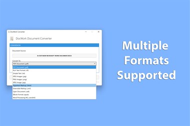 Simple Document Converter can convert any of your .DOC and .DOCX documents into many different file formats including .HML, .PNG, .PDF, and more! Simple Document Converter supports documents that contain text, images, and even charts and graphs with ease.