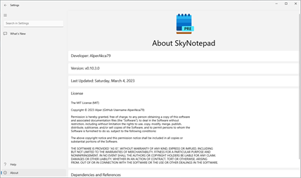 SkyNotepad is a Simple, Fluent, Free and Open Source Text Editor for Windows. You Can Create/Edit Text Documents and Markdown Source Files. SkyNotepad has a Markdown Preview feature so you can organize your GitHub README files more easily. SkyNotepad is still in development and preview. If you see a bug/issue please create a new issue from SkyNotepad GitHub page.