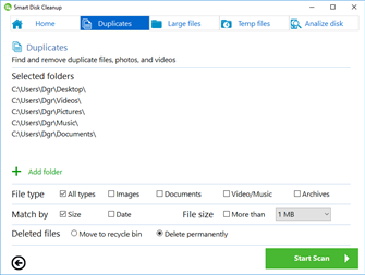 Over time, your computer starts to get cluttered with old and unnecessary items. Smart Disk Cleanup provides a safe and easy way to clean up junk files, duplicates, and large files. In just a few minutes you can safely and easily free up GBs of disk space. Items cleaned with Smart Disk Cleanup: