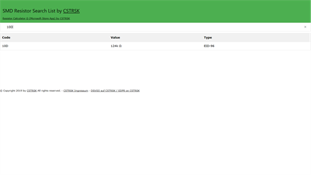 With this App you can find easily your SMD (Surface-mounted device) Resistor with the Ω (ohms) in our SMD Resistor Search List. Simply open the App Type your Value in the Search field and find your Resistor by Name, Value and Type. Supported are 3-digit, 4-digit (E24 series), 4-digit (E96 series) and EIA-96.