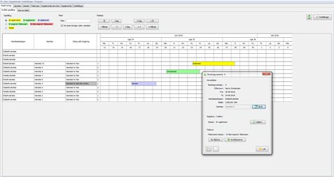 Programmet kan indeholde en grafisk opstilling af alle værelser, samt gennemsyn af alle bookinger som en tabel. Oplysninger kan let tilføjes, ændres eller slettes.
