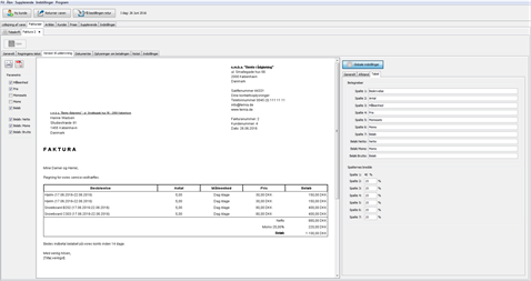 Programmet giver mulighed for at danne egne dokumenter. Dokumenternes udformning kan være brugerdefineret, og der kan også anvendes færdige skabeloner, som ligger i programmet. Programmet forudser også dannelse af fakturaer med titler, logotype og andre af brugerens indstillinger. Ved dannelsen af en faktura skal en bruger vælge, hvilken udlejningspris en kunde ønsker. Udover positioner for udlejning kan en bruger selv tilføje supplerende positioner på fakturaen. Fakturaer kan have flere momssatser. Af bekvemlighedshensyn er der en programassistent, der kan hjælpe med at indstille fakturaens udseende og automatisk angivelse af momssats.