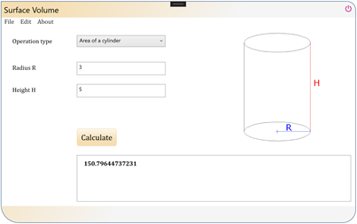 Surface Volume is an application that permits to calculate the areas and volumes of geometric figures like circle, sphere, rectangle, triangle, pyramid, pentagon, icosahedron, cone, cylinder, box ellipsoid of revolution (spheroid), and 3 axes ellipsoid. The calculations available in the application are: ❖ Area of a circle ❖ Area of an inscribed circle ❖ Area of a sphere ❖ Area of a pentagon ❖ Area of an icosahedron ❖ Area of a rectangle ❖ Area of a triangle ❖ Area of a cylinder ❖ Volume of a sphere ❖ Volume of an icosahedron ❖ Volume of a pyramid ❖ Volume of a cylinder ❖ Volume of a cone ❖ Volume of a spheroid ❖ Volume of a box ❖ Volume of an ellipsoid