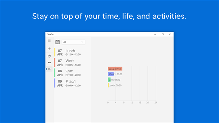 Keep your tasks and reminders organized and in view with TaskDo. View your current and future schedules on the graph to improve your focus and productivity.