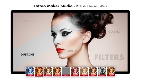 Features - # Crop - 10+ sizes to crop photo accordingly # Tattoo - 100+ tattoos listed properly, you can customize and change color of tattoo with the help of list of colors available # Text - add multiple custom texts to get a picture perfect