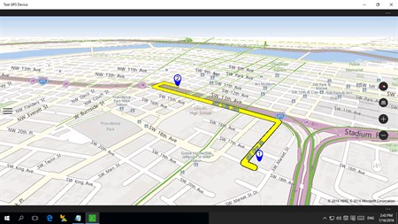 The program "Test GPS Device" is intended to test the operation of GNSS sensor your device with Windows 10. The same application checks for the main sensor and display their data. The program allows you to get information about geographic location: speed, height and the accuracy of their measurements. Check your device and find out with any precision GNSS sensor can work. The coordinate values obtained from the sensor, you can see on the map. Additional features: getting data from GNSS sensor with specified precision; mapping coordinates on the map; getting addresses from coordinates; getting coordinates from address; get directions by car from point 1 to point 2.