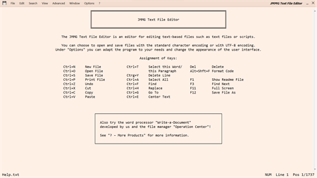 Gratis tekst editor: JMMG Text File Editor er en editor til redigering af tekstbaserede filer såsom tekstfiler eller scripts. Den indeholder mange nyttige funktioner til tekstredigering.