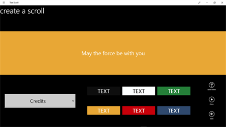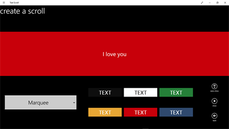 Each of the effects repeat infinitely after the entire message is displayed. After your done just press the back button to create another scroll or to go to the main menu. There are also have six color options for you to choose from. Go ahead and try Text Scroll and discover that many ways you can use this app.