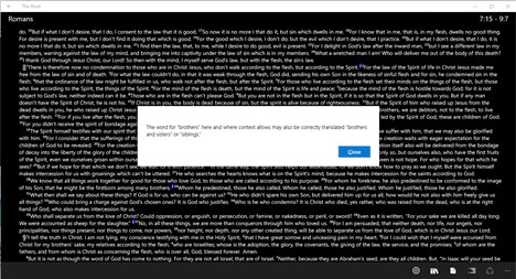 V1.2 • Bug fixes when navigating to the last verse of a chapter • Fixes content in Romans 14 & 16