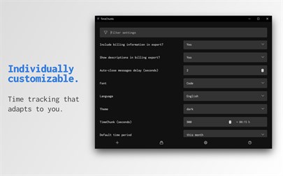 - Record working hours in record speed - simply by keyboard - No timer and no annoying HH:MM:SS input fields - Record your times with simple and flexible paths exactly as it suits you and your work - If you want, TimeChunks is fully keyboard usable - Thanks to flexible filters and simple copy & paste, TimeChunks integrates into almost any environment - Your data stays where it belongs: on your device - No monthly fees - TimeChunks has a unique comic mode