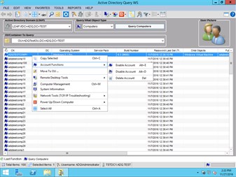 Active Directory Query allows you to view and manage various objects within your Microsoft Active Directory environment. There are several administrative functions available for objects queried. Whether you work on the help desk or with Windows network management, Active Directory Query can help make your job easier. Active Directory Query has been designed from the ground up by Windows network administrators and is the perfect compliment to built-in Windows administration tools. It works together with freely available products such as Group Policy Management Console. It is the perfect tool to administer, secure, and audit your Windows network.