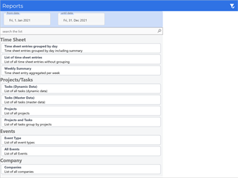 functions - There are different working time models to choose from - Time clock for time tracking - Manual entry, adjustment and deletion of time entries - Capture of customers and assignment to tasks and projects - Capture projects with any number of tasks - Record and manage absences, holidays and public holidays - Different overviews for a day, week, month and year - Configurable reports with export to Excel and prepared PDF - Choose from three possible working time models: 1. X days a week with target hours for each day 2. Rolling week with 7 days 3. Annual working hours