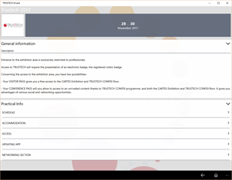 TRUSTECH is the official App for TRUSTECH, the global event for Payment, Identification, Connection& Security. TRUSTECH will take place at the Palais des Festivals de Cannes, French Riviera, from 28 November to 30 November 2017. TRUSTECH is a Must have for your visit. It will enable you to: - Consult the exhibitor list, the conference programme and the speakers list - Create your personal event calendar - Consult the activities organized during the 3-day event - Check the show's interactive floor plan - Get the event’s latest news - And much more.