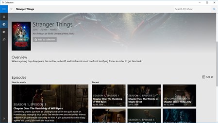 Discover, track, and manage TV shows in style with this Windows 10 app.