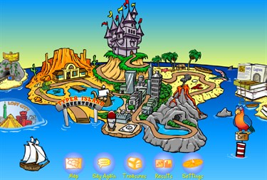 Adventurer Tools Typer Island has a lot of Adventurer tools for kids to find their way around the Island. Aboard the Tour Ship kids can learn everything about Typer Island! A convenient Map Room helps kids see where they are on their Typer Island Adventure, where they are going next, and what keys they will learn. The Treasure Chest shows what new coins and points they have earned. Kids can display a variety of graphs in the Saved Results area to see their performance on all their typing activities; lessons, challenges, stories and even games. They can see their progress and the keys on the keyboard they need to practice.
