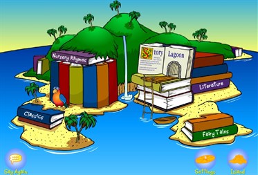 Explorer Isle Cave Kids can take a break from their typing adventure at any time to explore Typer Island. The Cave on Explorer Isle has an awesome game room where kids can choose to play any of Typer Island’s games – except the exciting bonus games available in the Castle and the Lost City. They must reach the Castle to play those games. Kids can choose to take more lessons or challenges on Explorer Isle. They can also visit Story Lagoon and practice their skills by typing a favorite story from literature, such as excerpts from The Adventures of Tom Sawyer, a nursery rhyme, a classic book, or a fairy tale.