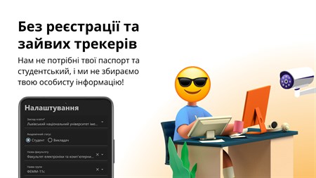 Заклади освіти, доступні у додатку: - Львівський національний університет - Більше закладів освіти – вже скоро ✨️!