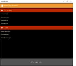 Universal Unzip just unzips your zip archives. That's all. Nothing more.