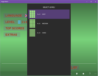 “Veggie Match” is a fun and educational game that combines a popular memory pair matching game concept with an easy-to-learn approach to memorizing the names of the vegetables in various languages. With “Veggie Match” (Vegetable Match) you can practice how to pronounce vegetable names in multiple languages or relax with the simple pair matching mode.