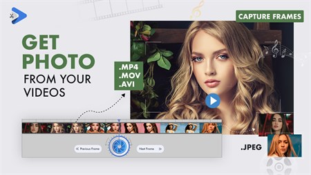 Snapshot (Video to Image Converter) Video to Image Converter helps you to capture images from your favorite videos. How to Use: ~ Upload your video by clicking the SNAPSHOT tab. ~ Select a position on the video by dragging the cursor on the track or use forward and back buttons and then click the camera button. ~ You can also rotate the wheel to see next frames and click on camera to capture the image. ~ Click the + (plus) button on each image to Open File, Open Folder, Share File or even delete it.