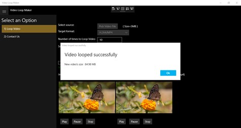 The application has option to specify the number of times the video should be repeated.For example : If you want the video to be repeated for 10 times, just specify this number and a new looped video will be created which will be repeated 10 times in a loop. This video could be played in any player, uploaded to a website, uploaded to social media & shared with friends.The video will loop automatically anywhere it is uploaded or shared.No other special settings will be required to loop it.The looped video will play along with the sound.