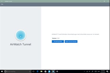 VMware® Tunnel forbinder både interne og offentlige apps til virksomhedsressourcer i et sikkert netværk. Med Windows 10+ per-app VPN egenskaber giver VMware Tunnel adgang til virksomhedsressourcer bag firewall, hvilket giver dig nem adgang til hvad du behøver for at være produktiv. Kun styrede apps kan oprette forbindelse til virksomhedsressourcer, hvilket sørger for at dit privatliv forbliver sikkert. Bemærk: VMware Tunnel fungerer sammen med og styres gennem konfigurerbare systemindstillinger i admin konsollen. VMware Tunnel kan ikke fungere ikke uden VMware’s infrastruktur. Kontakt venligst din IT administrator før du installere VMware Tunnel. VMware Tunnel vigtigste funktioner Få adgang til virksomheds ressourcer • Styrk din produktivitet med hurtig adgang til virksomhedsressourcer bag en firewall • Anvend Internet Explorer (IE) til at oprette forbindelse til interne virksomhedens webressourcer og intranet Problemfri brugeroplevelse • Opret forbindelse til intranet, lagre og andre virksomhedsressourcer gennem styrede apps eller IE. • Vedligehold en adskillelse af privatlivet da det kun er styrede apps der kan på adgang til virksomhedsressourcer • Benyt Auto Connect VPN funktionaliteten til nemt at oprette forbindelse til dine virksomhedsressourcer.