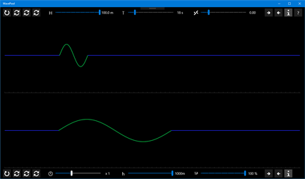 A wave pool to play with. Has both continuous and single waves with reflection at the right side of the pool.