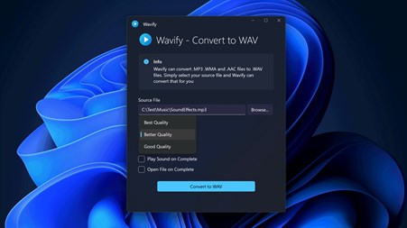 Wavify is a no-frills app that gets the job done. Easy to use, beautifully designed, and lightweight, Wavify can easily and quickly convert your audio files to WAV with ease. Simply select your source file and convert.