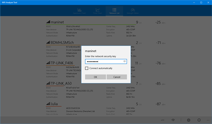 WiFi Analyzer Tool is an intuitive and helpful app designed to help you discover Wi-Fi networks in your surroundings, display all their available details, and optimize your Wi-Fi connection by identifying the best channels to avoid congestion and slow connections. Fine-tune your router settings to eliminate channel conflicts and achieve peak Wi-Fi performance. The app offers a range of useful features: • Detailed Network Information: View network names (SSID), security protocols, signal strength, and much more information about the networks around you. • Spectrum Chart: Utilize the comprehensive spectrum chart to identify overlapping networks and select the best channel for your router, helping you avoid congestion and slow connections for optimal performance. • Connect to Networks: Easily connect to listed networks directly through the app. • Fast and User-Friendly Interface: WiFi Analyzer's clean and understandable interface ensures you quickly find the information and settings you need.