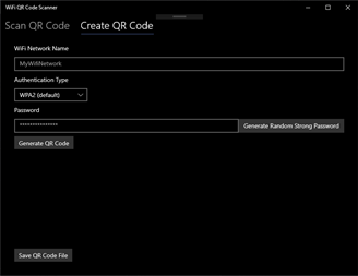 WiFi QR Code Scanner allows you to scan and generate standard WiFi QR Codes. Scan using your webcam and instantly connect to that network. Simply hold a WiFi QR Code up to your webcam and click connect when scanned. Once scanned, the network will be saved by Windows for later re-connection.