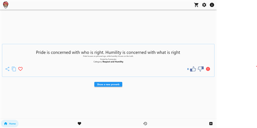 Dive into a vast, categorized collection of insightful proverbs. Discover and vote on your favorites, save them for easy access, and track your proverb journey with our history feature. Download WisdomBytes - your daily dose of wisdom !