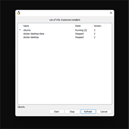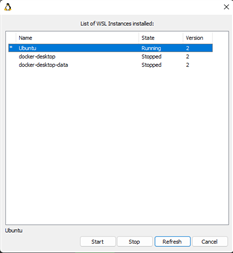 Left-clicking the icon will bring up a dialog to show your installed distributions, and let you start or stop them.