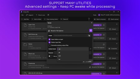 ???? Compress and decompress multiple files or folders at once. There's no limit to how many files and folders. ???? All processing is performed locally on your computer where your files remain safe and private. Enjoy peace of mind when storing sensitive data or securely sharing data.