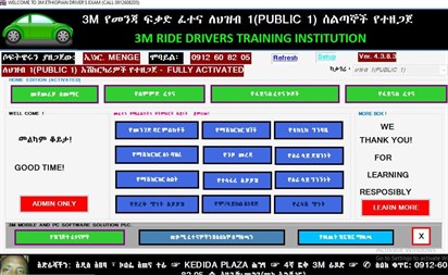 Overall, the "3M Ethiopian Drivers Training Kit Computer Application" is a valuable tool for driving instructors, training centers, and individuals seeking to obtain their driver's license in Ethiopia, offering a comprehensive, flexible, and efficient solution for driver training and education.
