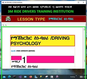 The "3M Ethiopian Drivers Training Kit Computer Application" is a comprehensive and versatile software solution designed to facilitate driver training and education in Ethiopia. This application offers a wide range of key features and benefits tailored to the specific needs of driving instructors, training centers, and individuals seeking to obtain their driver's license: Key Features: 1. Multimedia Content: The application includes multimedia resources such as videos, animations, and interactive simulations to enhance the learning experience and facilitate understanding of driving concepts. 2. Comprehensive Curriculum: It provides a structured curriculum covering all aspects of driver training, including traffic regulations, road signs, driving techniques, defensive driving, and emergency procedures. 3. Multilingual solution: is a valuable tool for driving schools and instructors in Ethiopia, offering a comprehensive, efficient, and multilingual solution for evaluating student performance and promoting high standards of driver training 4. Interactive Exercises: Users can engage in interactive exercises and simulations to practice driving skills, decision-making, and hazard perception in a safe and controlled virtual environment. 5. Progress Tracking: The application tracks users' progress throughout the training process, allowing instructors to monitor their students' performance, identify areas for improvement, and provide targeted feedback and support. 6. Customizable Lesson Plans: Instructors can create personalized lesson plans tailored to the needs and skill levels of their students, adapting the curriculum to address specific learning objectives and preferences. 7. Certification and Assessment: The application enables instructors to administer assessments and certification tests to evaluate students' proficiency and readiness for the driver's license examination. 8. Management Tools: It offers administrative tools for managing student records, scheduling lessons, tracking attendance, and generating reports, streamlining the management of driver training programs. Benefits: 1. Enhanced Learning Experience: The use of multimedia content and interactive exercises enriches the learning experience, making it engaging, enjoyable, and effective for students of all ages and learning styles. 2. Comprehensive Training: By covering all aspects of driver training, the application ensures that students receive thorough preparation and instruction, equipping them with the knowledge and skills needed to become safe and responsible drivers. 3. Improved Instructor Efficiency: The application automates many administrative tasks and provides tools for tracking student progress, allowing instructors to focus more time and attention on teaching and mentoring their students. 4. Standardized Training: The use of a structured curriculum and assessment tools helps ensure consistency and quality in driver training programs, regardless of location or instructor. 5. Cost-Effective Solution: The "3M Ethiopian Drivers Training Kit Computer Application" offers a cost-effective alternative to traditional classroom-based driver training programs, reducing the need for printed materials, physical resources, and instructor time. 6. Road Safety Promotion: By promoting comprehensive driver training and education, the application contributes to the promotion of road safety and the reduction of traffic accidents on Ethiopian roads.