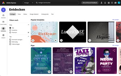 Entwirf Flyer, TikTok-Videos, Lebensläufe und Reels mit dem neuen All-in-one-Tool Adobe Express. Darüber hinaus kannst du beispielsweise Folgendes tun: • Generiere blitzschnell mit nur einer Beschreibung herausstechende Texteffekte und Bilder dank der generativen KI von Adobe Firefly • Kombiniere Videoclips, Bilder, Animationen und Musik, um im Handumdrehen per Drag-and-Drop Videos zu erstellen. • Nutze Tausende professioneller Design-Vorlagen, Adobe Stock-Fotos, -Videos, -Musikstücke und mehr, um deine Projekte schneller fertigzustellen • Erledige häufige Aufgaben mit nur einem Klick, zum Beispiel das Konvertieren ins GIF-Format, das Entfernen des Hintergrunds oder das Generieren von QR-Codes • Stelle mit Marken-Kits und Vorlagen sowie Funktionen zur Zusammenarbeit in Echtzeit sicher, dass dein Team konsistente Inhalte erstellt • Importiere und bearbeite reibungslos verknüpfte Photoshop- und Illustrator-Inhalte, die durchgehend synchronisiert werden Adobe Stock und Adobe Fonts Greife auf Hunderttausende lizenzfreie und vielfältige Adobe Stock-Fotos, Adobe Fonts-Schriftarten, Symbole, Hintergründe und mehr zu. Benutzerfreundliche Tools und Schnellaktionen • Animiere Inhalte, passe Entwürfe für die Anzeige auf verschiedenen Plattformen an oder füge dein Branding mit nur einem Tippen hinzu • Entferne Hintergründe, konvertiere Videos ins GIF-Format, passe die Größe von Videos und Bildern an, lasse Videos rückwärts laufen, füge sie zusammen, schneide sie zu, ändere ihre Wiedergabegeschwindigkeit oder konvertiere sie ins MP4-Format, oder konvertiere Bilder zu JPG oder PNG – alles mit nur wenigen Mausklicks • Füge dein Branding mit nur einem Tippen hinzu • Konvertiere und exportiere Dokumente in Sekundenschnelle in das und aus dem PDF-Format und anderen Dateiformaten, ohne dass dabei Formatierung oder Schriftarten verlorengehen Passe deine Entwürfe an Du musst nur einige Male tippen, um mit Photoshop-Effekten Ausschnitte anzupassen, mehrere Inhalte mit Ebenen und Effekten zu kombiniere und Bildeffekte und Mischmodi hinzuzufügen, um den gewünschten Look zu erzielen. Sei kreativ – wo und mit wem du willst Arbeite am Schreibtisch oder unterwegs in der Web-Anwendung oder der mobilen App – deine Dateien werden automatisch synchronisiert. Dank der integrierten gemeinsam genutzten Bibliotheken, Vorlagen und Marken kannst du bei der Arbeit mit Adobe Express und der Creative Cloud problemlos konsistente und markengerechte Inhalte erstellen. Wir sind gespannt darauf, was du alles erschaffen wirst. Viel Spaß! @AdobeExpress Deine Adobe Express-Mitgliedschaft schaltet weitere Vorlagen, Zugriff auf die gesamte lizenzfreie Foto-Sammlung von Adobe Stock*, Effekte und Schriftarten sowie Premium-Funktionen wie das Hinzufügen von Brandings, das Anpassen von Ausschnitten oder die Änderung der Größe von Inhalten frei. Deine zahlungspflichtige Mitgliedschaft umfasst die Premium-Versionen der folgenden Anwendungen: • Adobe Express im Web und für Mobilgeräte (iOS, Android) • Adobe Photoshop Express für Mobilgeräte (iOS, Android) *Die Foto-Sammlung von Adobe Stock umfasst keine Premium-Inhalte oder Editorial Content. Die Funktionalität von Adobe Stock auf der Webseite und die Videofunktionen in der Desktop-Anwendung sind eingeschränkt. HAST DU NOCH FRAGEN? • Instagram/Facebook: @AdobeExpress • Twitter: @AdobeExpress • Adobe-Kundendienst https://helpx.adobe.com/support/express.html Hier kannst du neue Funktionen vorschlagen: adobeexpress.uservoice.com