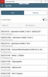 Einsicht / Zugriff auf • Akten • Beteiligtenadressen • Termine, WV und Fristen zur Akte • Aktengeschichte • advoware smartphone Kalender