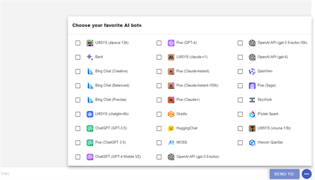 AI Chat Fusion is a cutting-edge application that revolutionizes the way you interact with chatbots. Experience the power of concurrent chatting with a diverse range of intelligent chatbots, all in one platform. Seamlessly integrating with popular chatbot services such as ChatGPT, Bing Chat, Bard, Alpaca, Vicuna, Claude, ChatGLM, and more, AI Chat Fusion offers a comprehensive solution for discovering the best answers to your questions