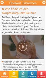 √ Zeitraubende Arztbesuche sind nicht erforderlich. √ Nennenswerte Geldausgaben sind nicht notwendig. √ Es besteht keine Gefahr der Verletzung, Infizierung oder Schmerzen. √ Sie massieren die Punkte sanft mit Ihrem Finger. √ Die App erinnert Sie automatisch an Ihre Massagetermine.
