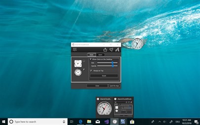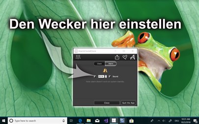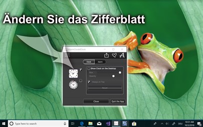 1 Tag GRATIS testen! Uhr, die erlaubt, den Wecker einzustellen und die Zeit sowohl in der Taskleiste, als auch auf dem Desktop des PCs zu zeigen. Sie können die Position, die Durchsichtigkeit, die Größe von der Uhr anpassen und mehr.