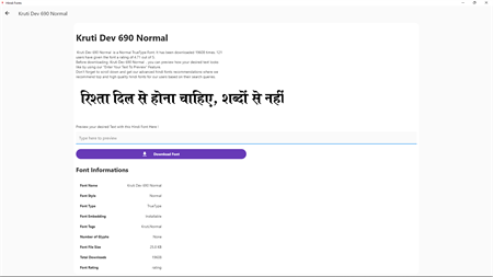 You can find the fonts for FREE and All the fonts are clear and readable. You can download Top Hindi Fonts (Devanagari, Nepali, Sanskrit and Marathi Font). We also have popular fonts like Devlys and Kruti Dev! You can use the fonts on various purposes like personal, professional or business use on workstations.
