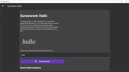 We have fonts that fulfill your typography, language, and translation purposes. The app also contains font converter tools, which help you to convert your existing text into a desirable font using Uni Code Converter which uses HTML language for the process.