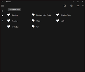 Du kannst deine erstellten Kombinationen speichern indem du sie zu deinen Favoriten hinzufügst. Auf deine Favoriten kannst du über deine anderen Windows Geräte zugreifen. Zum schlafen kannst du dir einen Timer stellen, der nach Ablauf aufhört zu spielen, außerdem lässt sich der Sound nach einer bestimmten Zeit ausblenden. Alle Geräusche haben ihren eigenen Lautstärkeregler.