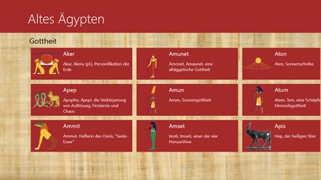 Alten Ägypten Anwendung ist ein digitales Nachschlagewerk, das Ihnen helfen, Ihr Wissen über altägyptischen Reiches, die größte Zivilisation in der Geschichte der Menschheit war erhöht. Dieses Buch beinhaltet folgende Leistungen: - Symbole - Götter und Göttinnen - Main Denkmäler