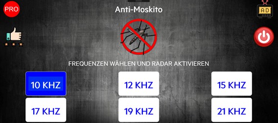 Diese Anwendung wird versuchen, alle Mücken und Insekten von Ihnen fernzuhalten! Diese Anwendung ist in der Lage, hochfrequente Töne (Ultraschalltöne) auszugeben, die alle kleinen Insekten irritieren sollten. Moskitos können diesen Klang als den Klang ihrer Feinde (z. B. Libellen, Fledermäuse) verwechseln.