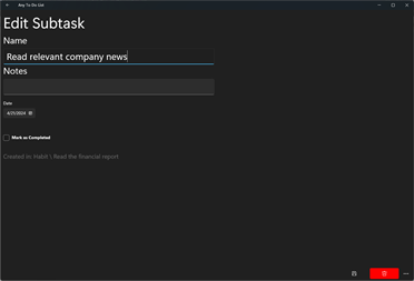 Key features: Customize items and icons. Custom categories. The number and status of monthly tasks under each project are visually displayed in the monthly calendar. The tasks under each project are clear at a glance. Click on the calendar entry to get the list of associated subtasks. You can modify the task status directly in the list. Each task can be associated with multiple subtasks. Collects statistics on the number of subtasks associated with each task. The bar chart counts the completed and unfinished units of each project in each month of each year. The list of unfinished and completed tasks is displayed independently. Tasks that have already been completed can be changed to Incomplete. Incomplete tasks can change their status to Completed. You can delete tasks that have been completed in each month with one click. You can switch the language of use. One-time purchase.