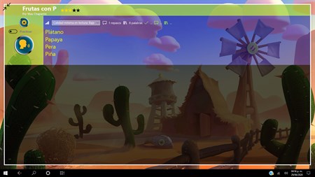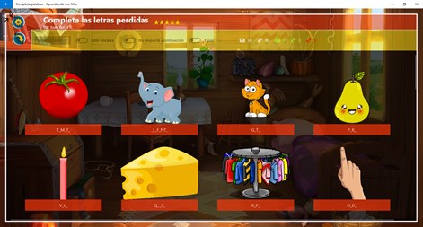 El módulo completar palabras también resulta entretenido para el niño, pues funciona como un juego, con sonidos y efectos visuales, para estimular a que el niño termine los ejercicios.